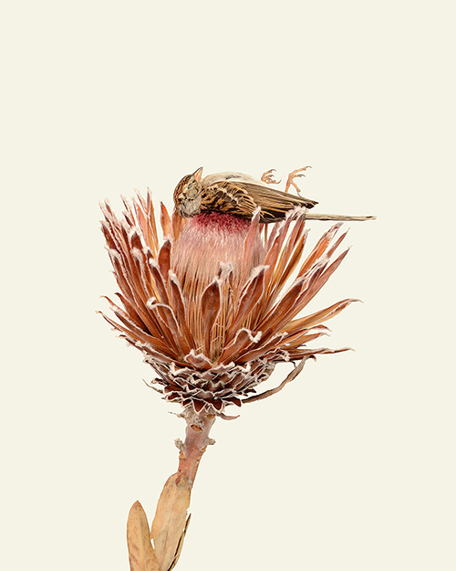 I create each piece in the studio as an act of reverence for the feelings stirred by the remains I find — birds, bones, withered blooms. Composed and lit to reveal time’s imprint, the work honors texture, form, and quiet transformation. It feels like a slow, tender acknowledgment of what once was and what still remains.